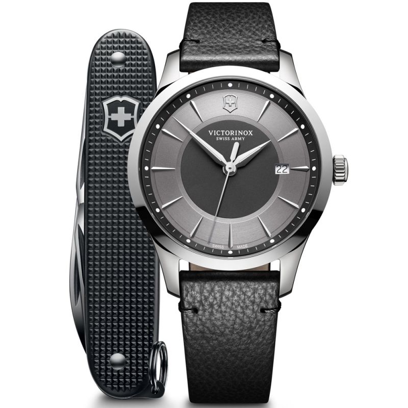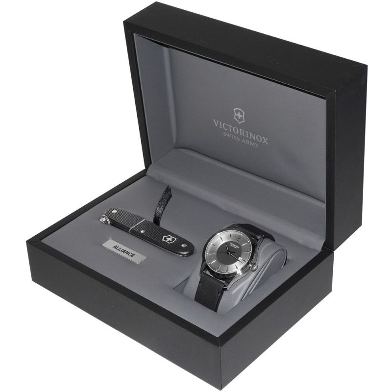 Victorinox Swiss Army ALLIANCE чоловічий кварцовий годинник / чорний циферблат / чорний шкіряний ремінець / 100м / Сапфірове антиблікове скло / сталевий корпус - 40мм + ніж 0.8201.231E Швейцарія 241904.1 Гарантія: 5 років