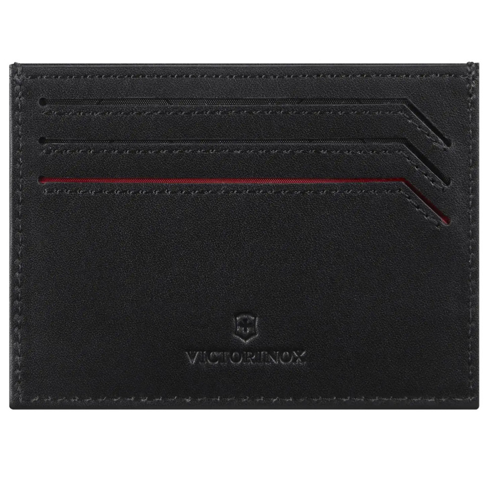 Victorinox Travel ALTIUS ALOX Slim Card Case (Black) – тонкий шкіряний картхолдер на 3 картки з RFID-захистом. Естетичний чорний дизайн із металевим шильдом-логотипом Victorinox. Деталізація підкреслена чіткою естетикою рифлених алюмінієвих накладок кишенькових ножів із колекції Alox.