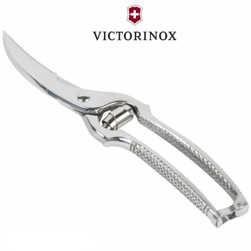 Сталеві ножиці для розробки птаха Victorinox Poultry 7.6345. Вони є важливим інструментом для шеф-кухарів або м'ясників, а також домашнього використання. Підійдуть для сирого і готового м'яса птиці, впораються також з акуратним нарізанням на порційні шматки.