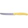 Ніж для томатів Swiss Classic з серейторним лезом 11 см та жовтою ручкою. Модель зі специфікацією Tomato&Table - це невеликий, але універсальний ніж, який стане незамінним помічником на кухні та за столом. Він чудово впорається не лише з нарізанням помідорів, овочів та фруктів, а й легко ріже м’які сири, зелень чи хрусткий багет. Завдяки закругленому вістрю ним зручно намазувати масло, мед або варення, що робить його практичним і у ролі столового ножа.