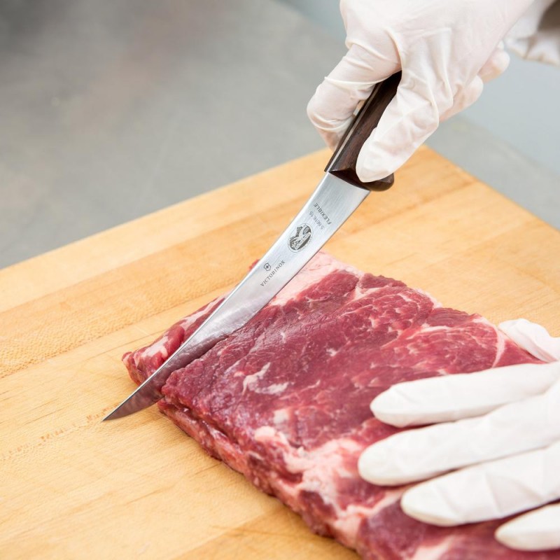 Швейцарський ніж для обвалювання м'яса, створений відповідно до стандартів професійних кухарів. Вузьке та вигнуте лезо дозволяє виконувати обвалювання максимально близько до кістки, зберігаючи ще більше м'яса.