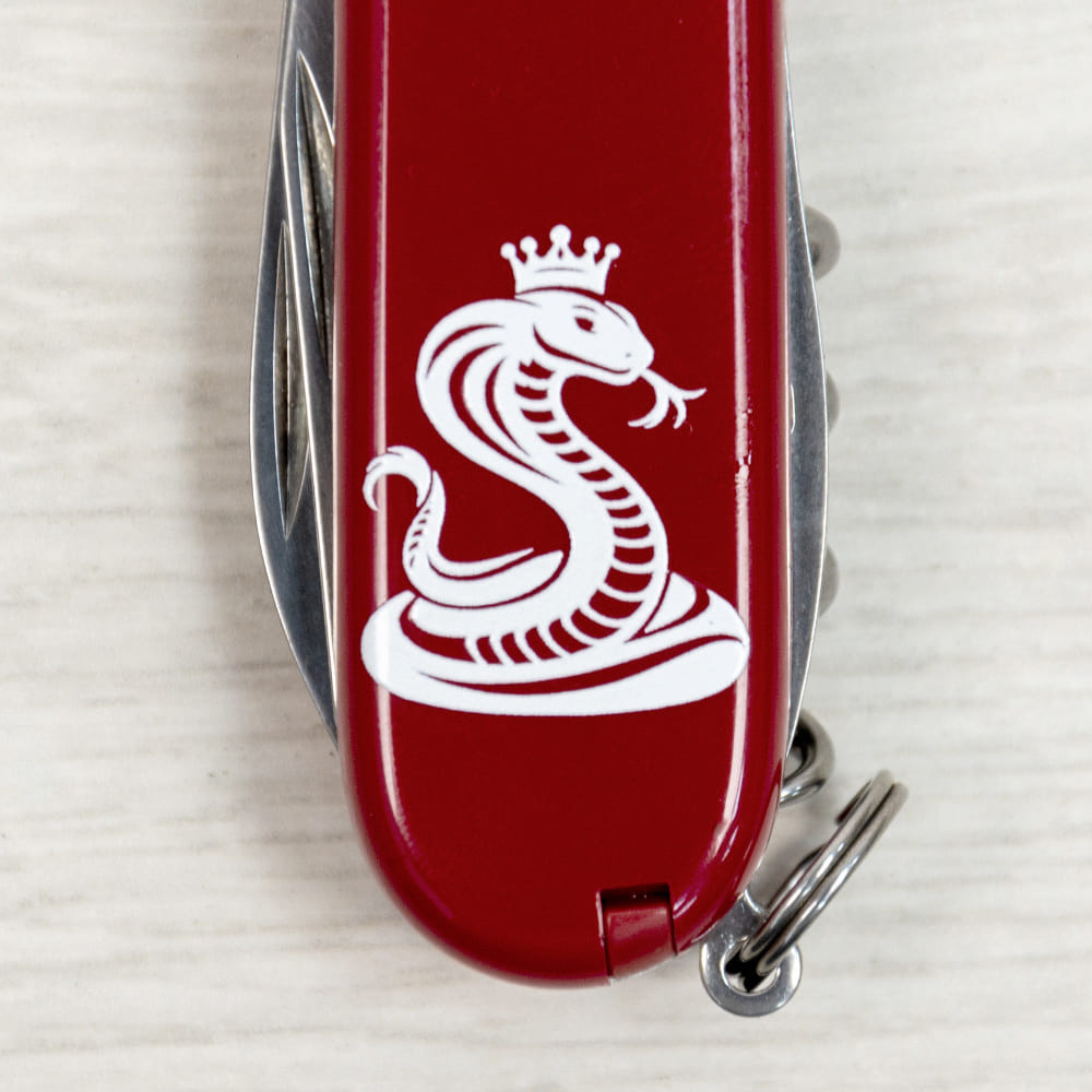 Ексклюзивний кишеньковий ніж SPARTAN ZODIAC 2025 [Кобра з короною] з колекції, присвяченої року Змії. Класичний Spartan 91 мм на 12 функцій з фірмовими для бренду червоними накладками. Легендарна якість швейцарських армійських ножів Victorinox у поєднанні з професійно виконаним друком на лицьовій накладці.