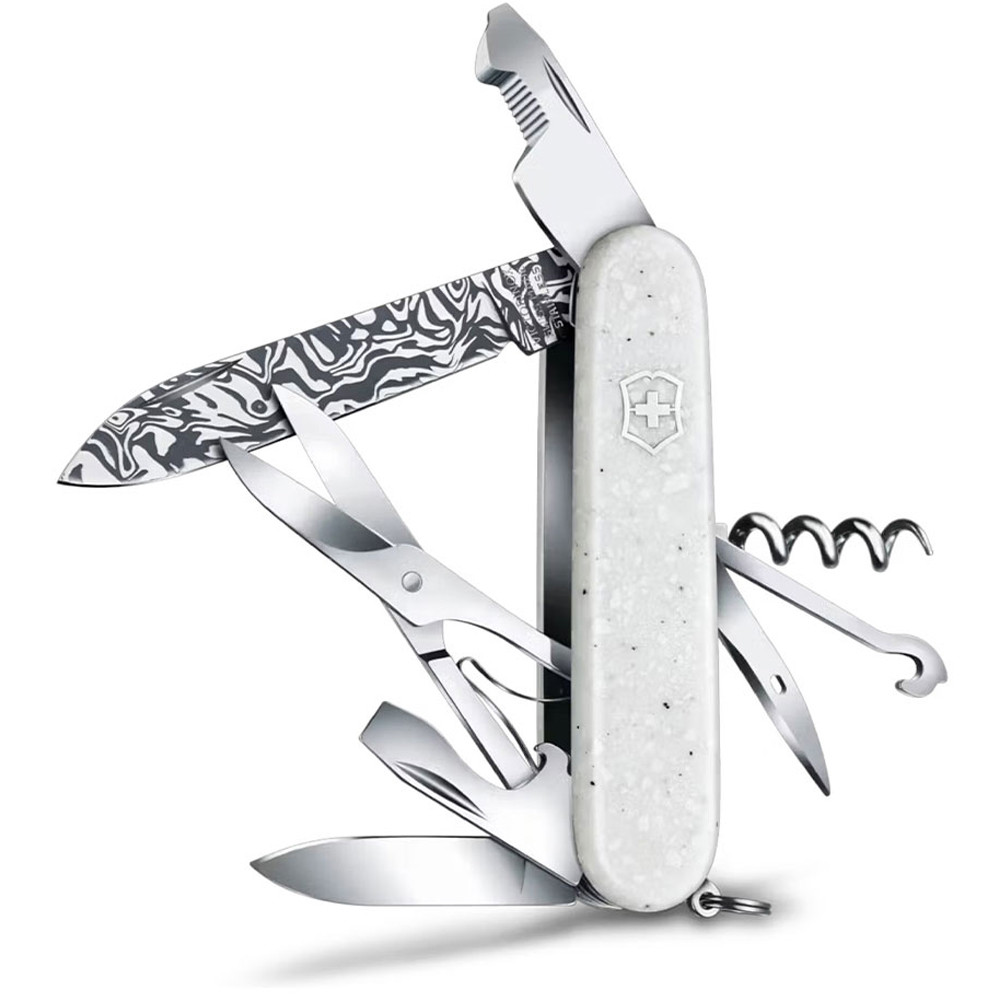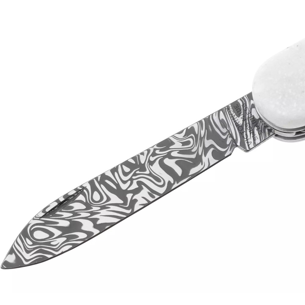 Колекційний складаний ніж Victorinox COMPANION Damast LE 2025 91мм/12 функцій/накладки з акрилового каменю Corian /дамаське лезо /відкривачка для коробок/ножиці/гачок (Lim.Ed. 7000) Швейцарія 1.3901.J25 Гарантія:
