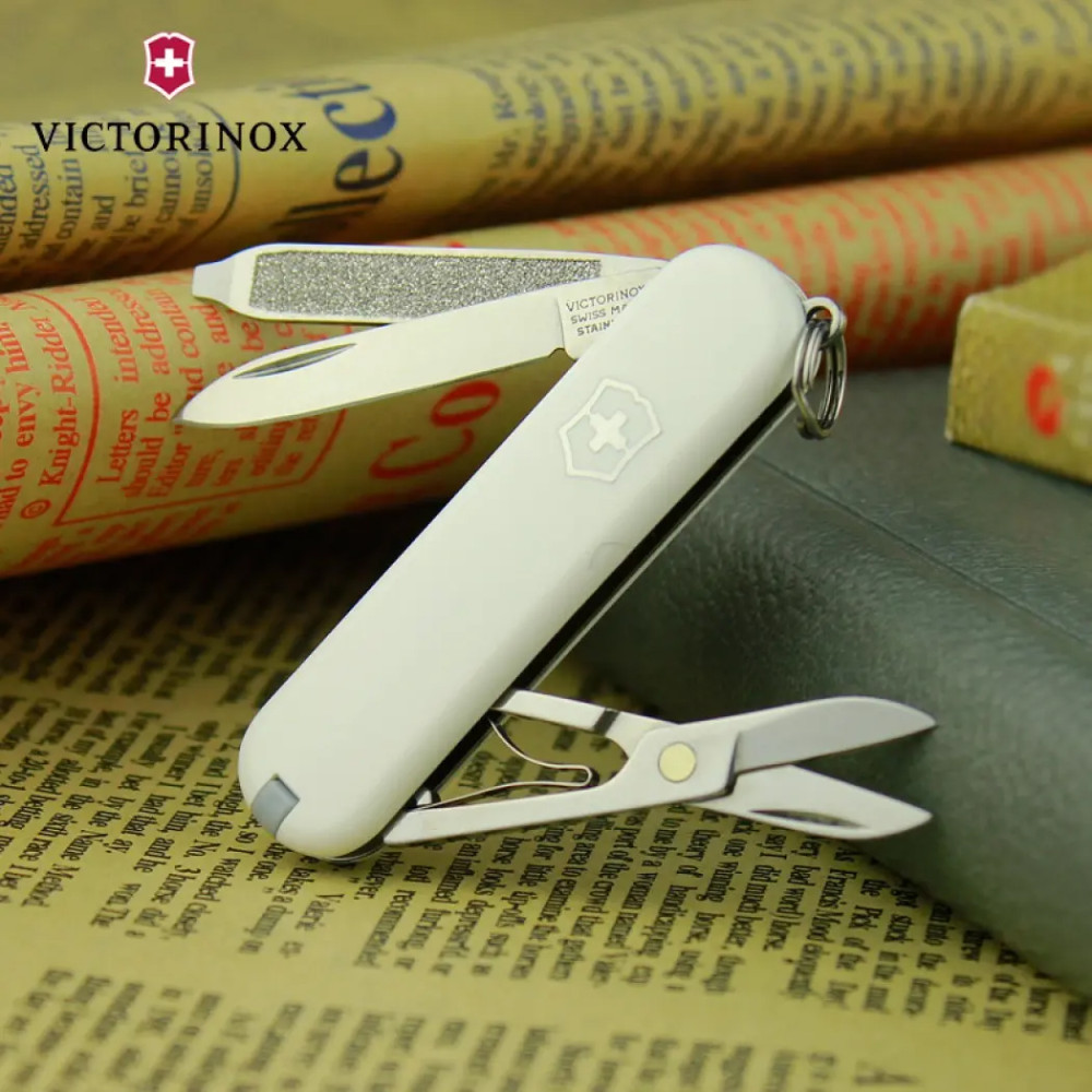 Стильний дизайн легендарного ножа Victorinox CLASSIC SD з білими глянцевими накладками. Маленький та легкий кишеньковий ніж 58 мм швейцарського виробництва з 7 функціями, який, як і раніше, є символом елегантної функціональності.