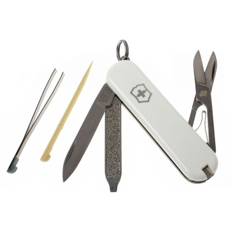 Маленький складаний ніж-брелок CLASSIC SD 58 мм / 2 шари / 7 функцій / з білими накладками Victorinox 0.6223.7