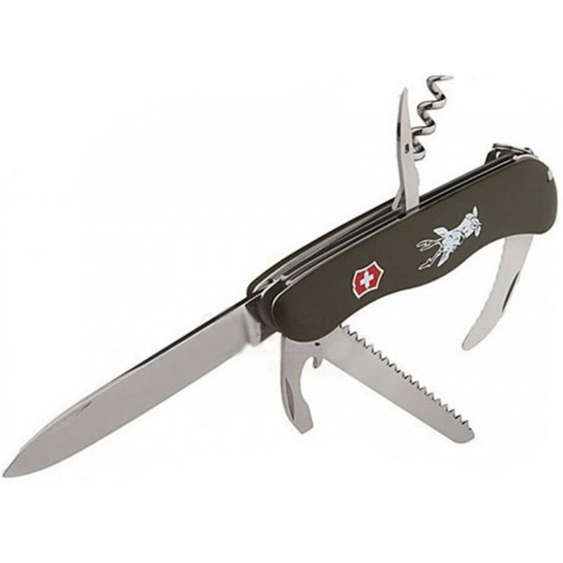 Великий кишеньковий ніж Hunter з фіксатором леза Slide Lock / 111 мм / 3 шари / 12 функцій / матові накладки кольору хакі Victorinox 0.8873.4 Швейцарія