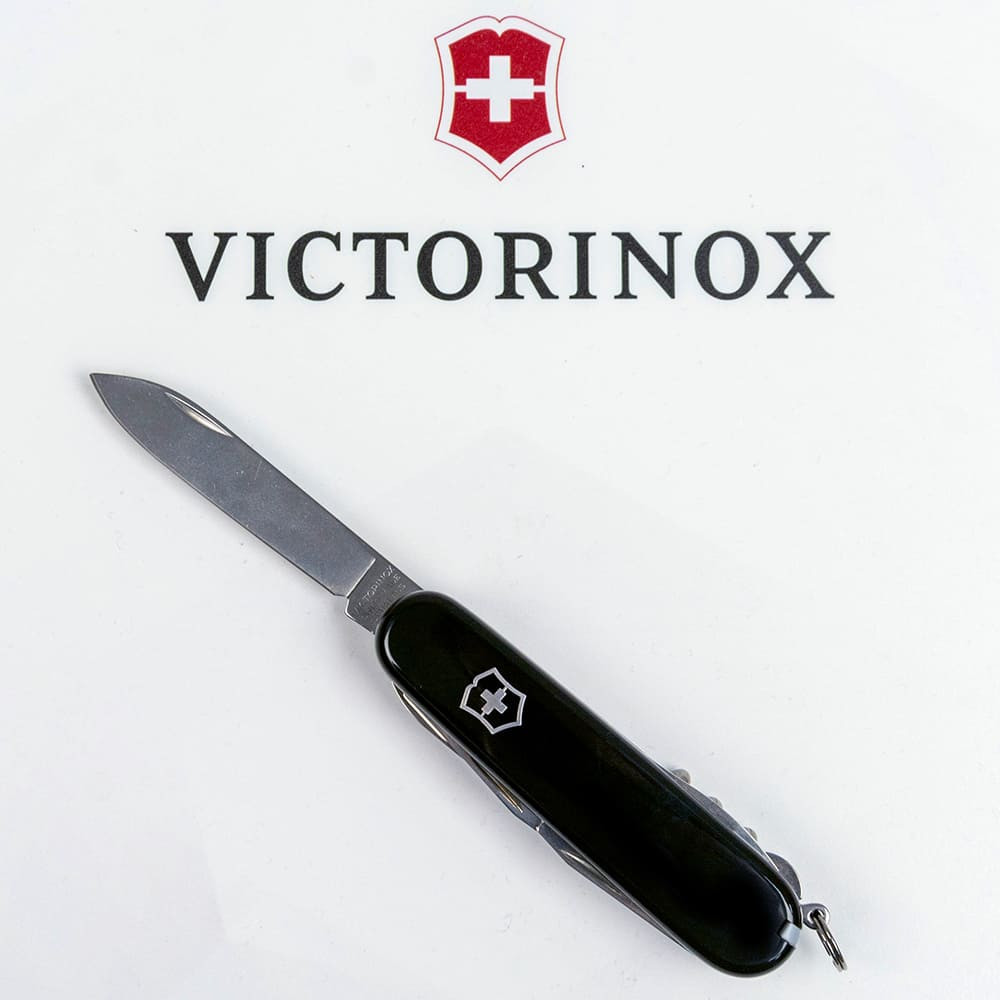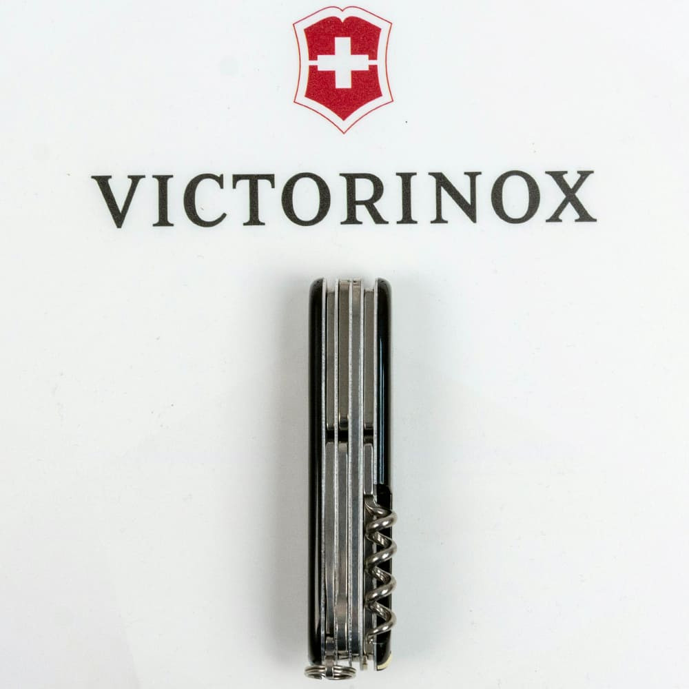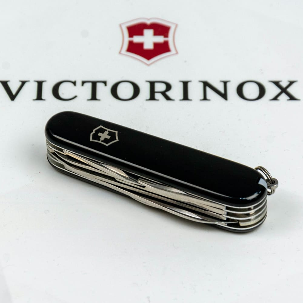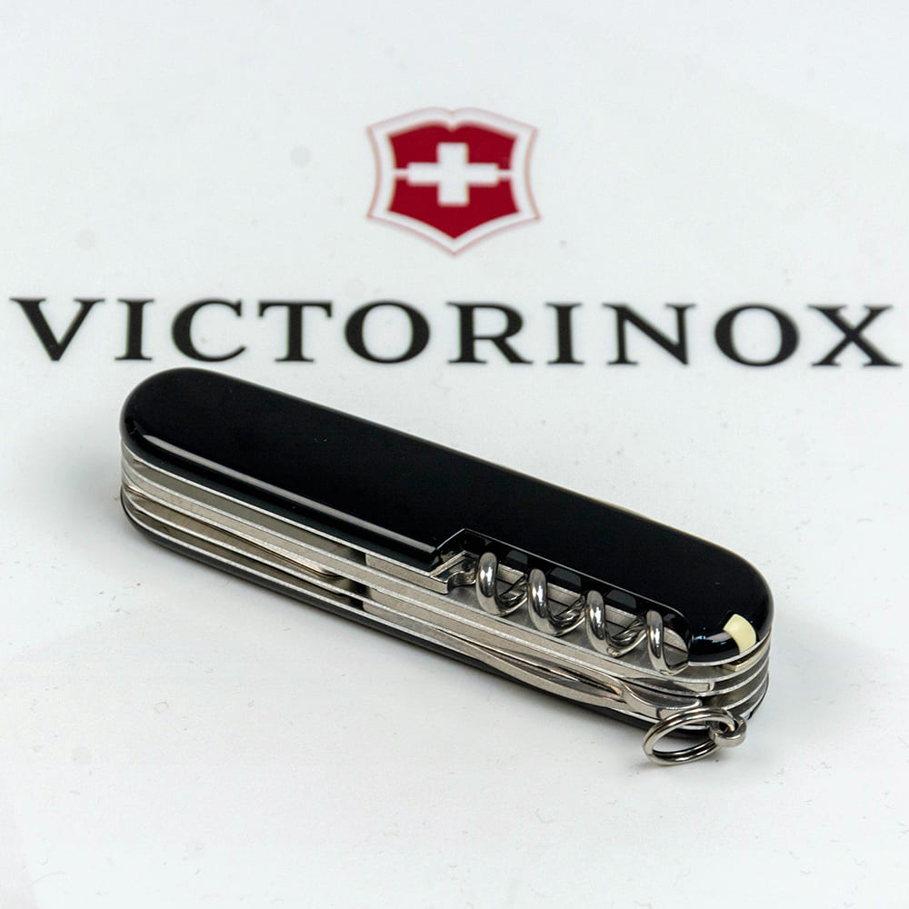 Швейцарський офіцерський ніж MOUNTAINEER 91 мм / 4 шари / 18 функцій / чорні накладки / багатоцільовий гачок / штопор / ножиці / пилка по металу
