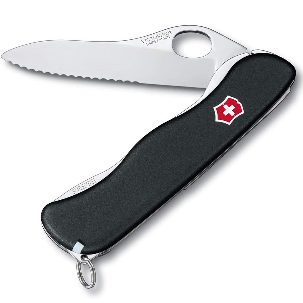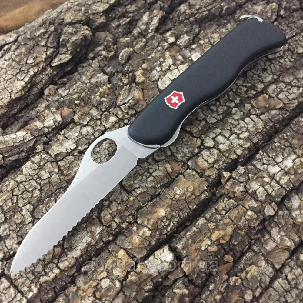Великий кишеньковий ніж SENTINEL з фіксатором леза Liner Lock / 111 мм / 1 шар / одноручний One Hand / серейторний клинок / чорні накладки / з кліпом Victorinox 0.8416.MW3 Швейцарія