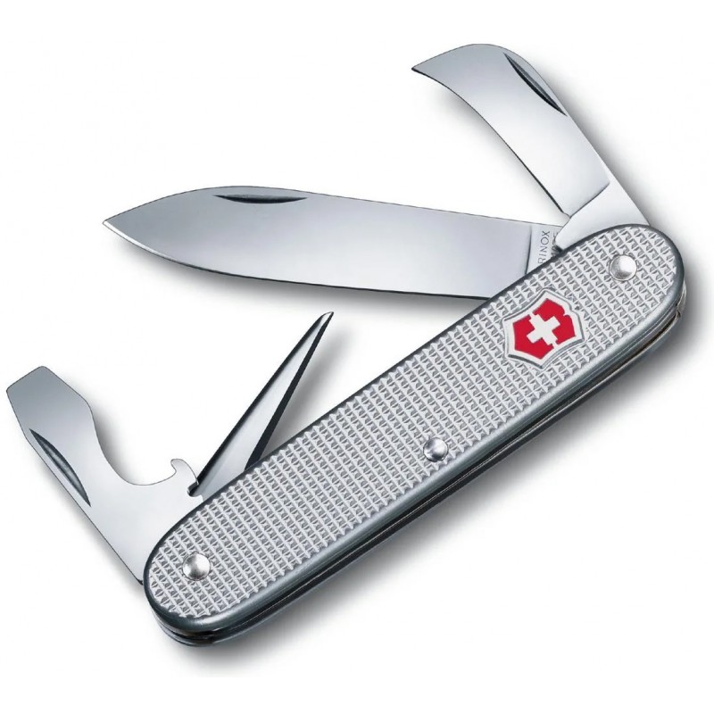 Швейцарський кишеньковий ніж SWISS ARMY 2 Pioneer Alox 93 мм / 1 шар / 2 функції / сріблясті рифлені накладки з алюмінію