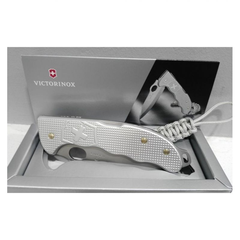 Великий складаний ніж мисливця HUNTER PRO Alox 136 мм / 4 функції / рифлені сріблясті накладки / одноручний One Hand One Hand / блокування леза Back-lock / кліп для кріплення / темляк з паракордом Victorinox 0.9415.M26 Швейцарія