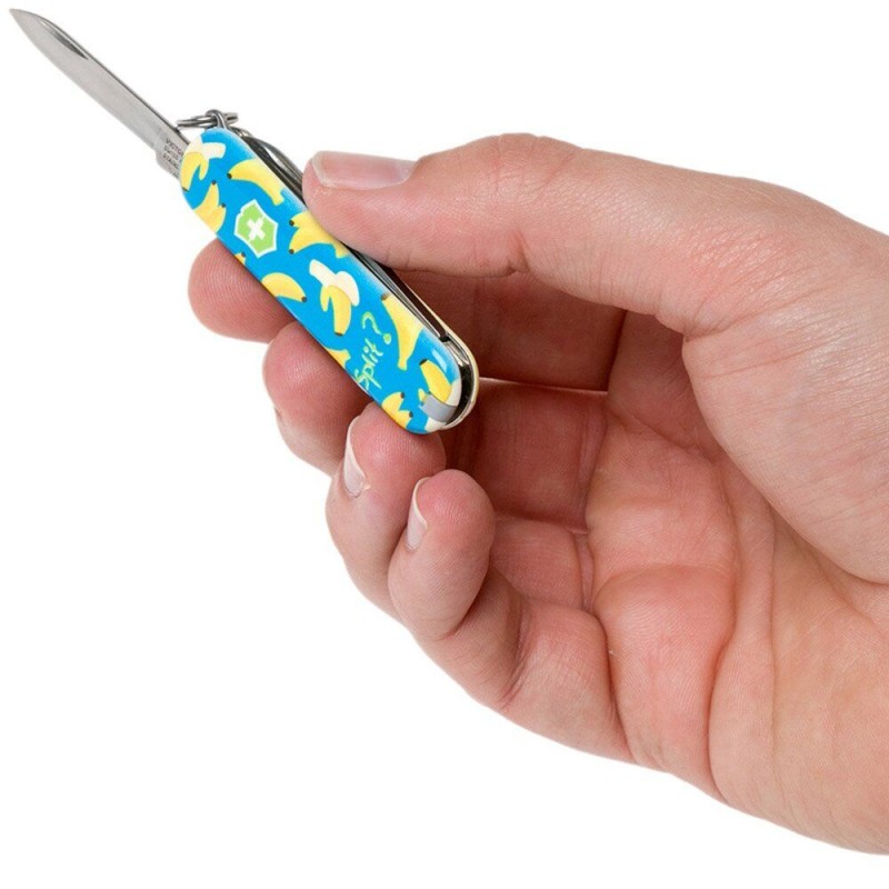 Колекційний швейцарський ніж-брелок CLASSIC LE "Banana Split" 58 мм / 2 шари / 7 функцій / кольорові накладки / ножиці + чохол (лімітована серія 2019)