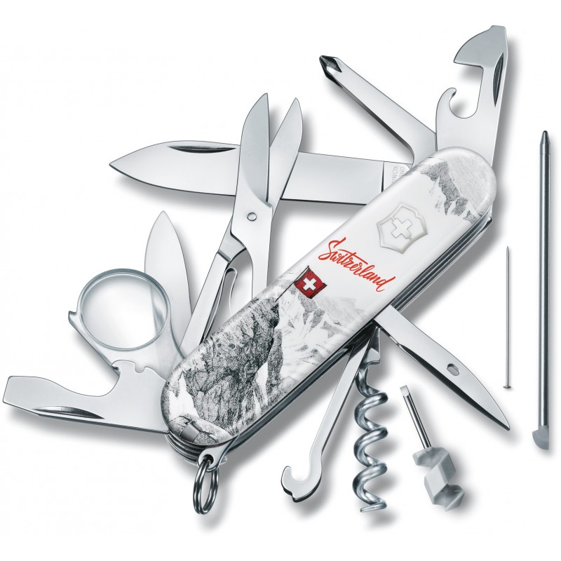 Explorer Swiss Spirit Special Edition2020 - спеціальний випуск легендарного швейцарського ножа від Victorinox. Дизайн присвячений Швейцарії, її духу і знаковим досягненням: Альпи, сири, шоколад, годинники і, звичайно ж, швейцарський армійський ніж SAK. Ідеальний варіант, щоб подарувати шматочок цієї унікальної країни. Надфункціональний складаний ніж на 19 функцій, розміщеними як на окремих, так і комбінованих інструментах: