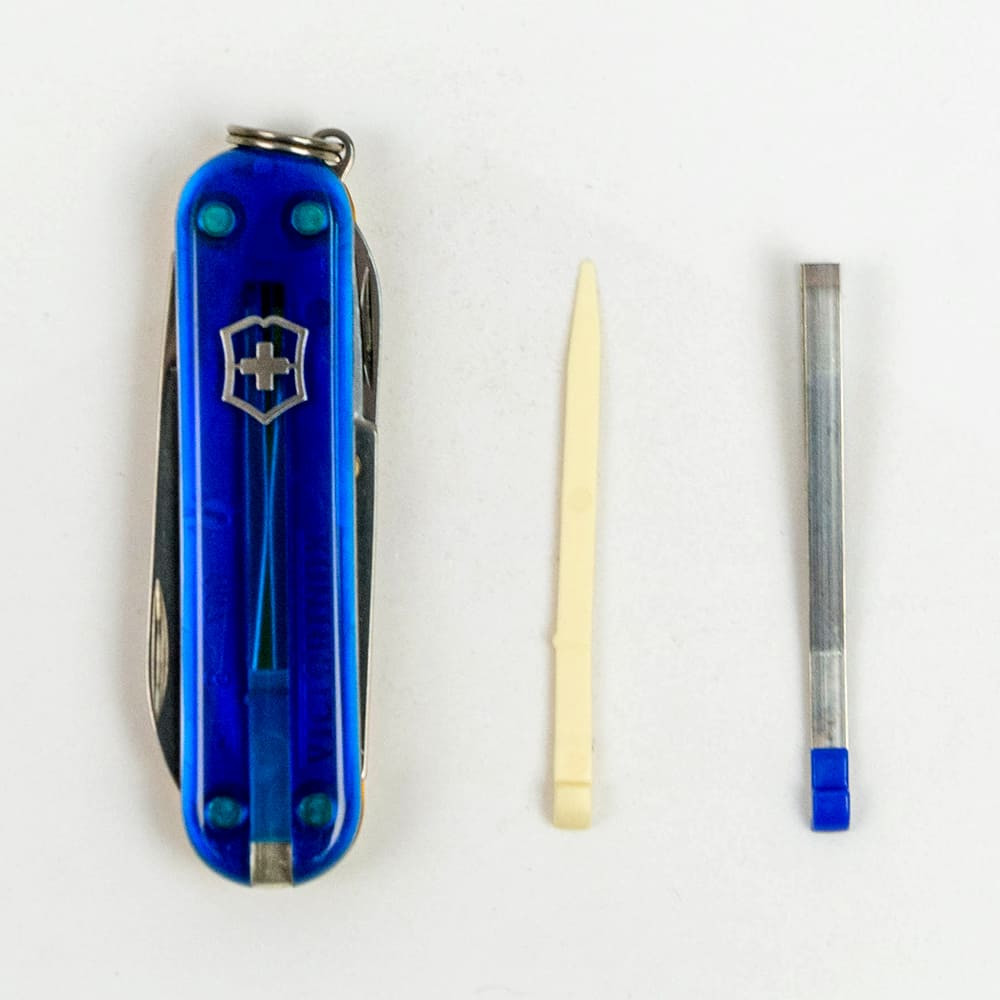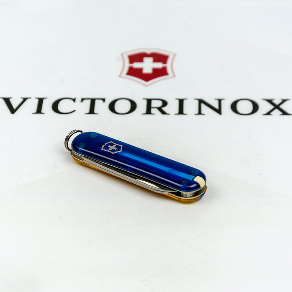 Швейцарський кишеньковий ніж Victorinox CLASSIC SD UKRAINE 58мм / 2 шари / 7 функцій / синьо-жовті напівпрозорі накладки / ножиці 0.6223.T2G.T81 (Швейцарія) Гарантія: довічна