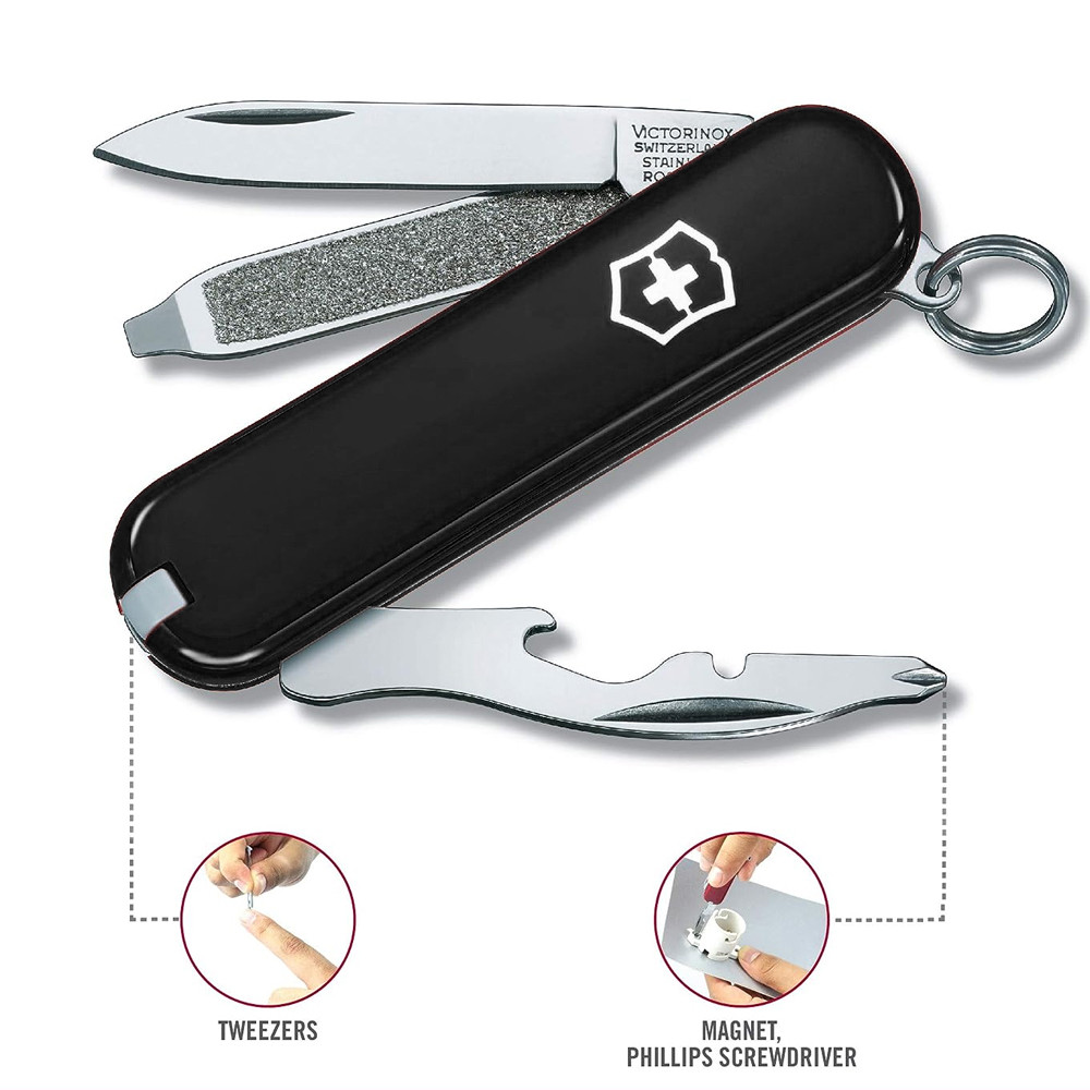 Victorinox RALLY (чорний) – маленький швейцарський ніж-брелок 58 мм на 9 функцій. Багатозадачний кишеньковий ніж із пилочкою та викруткою Phillips, який сподобається як дорослим, так і дітям. Навести лад з манікюром, заточити олівець або здійснити невеликий ремонт, з такою роботящою крихіткою, вам все до снаги. Всі інструменти гарантують бездоганну, довговічну роботу. Легендарна якість сталі Victorinox та професійна технологія обробки зроблять цей ніж вічним помічником на кожен день.